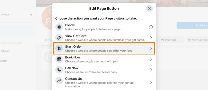 - Reach larger masses: every time someone likes your page or shares your posts, your restaurant information becomes visible to their followers, as well. That means that every time their friends or followers end up on your page, they’ll also spot the Facebook Start Order button, which will be winking at them.