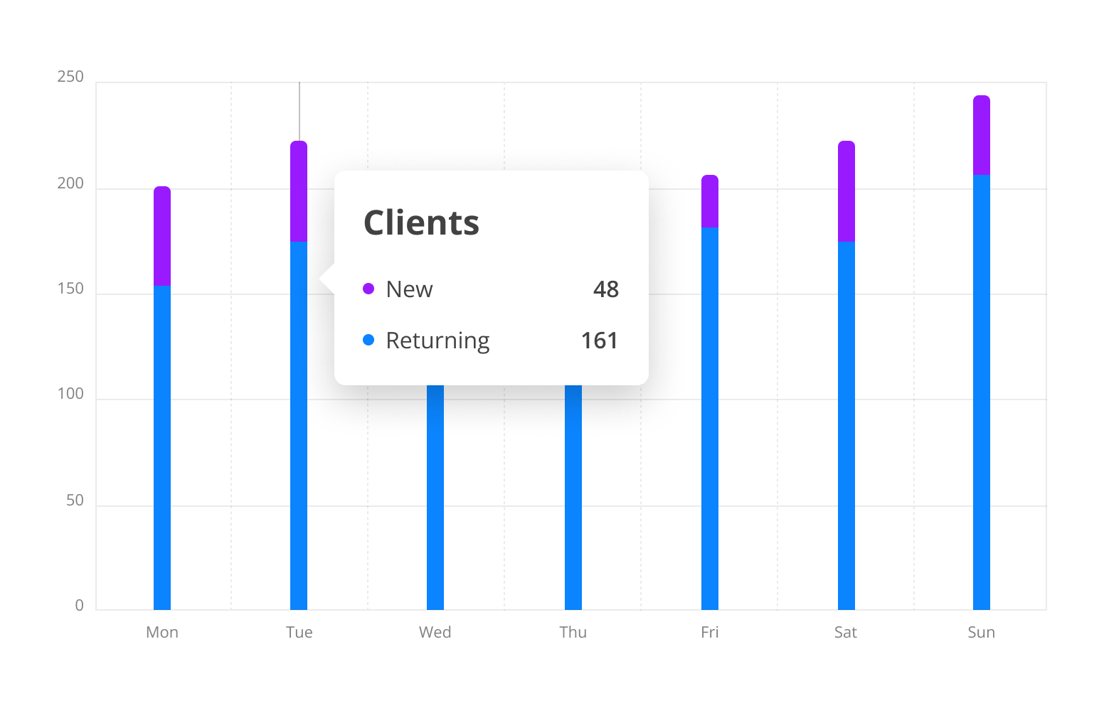 You can select different periods to see how many returning guests you have in a week, in a month, or in a semester.