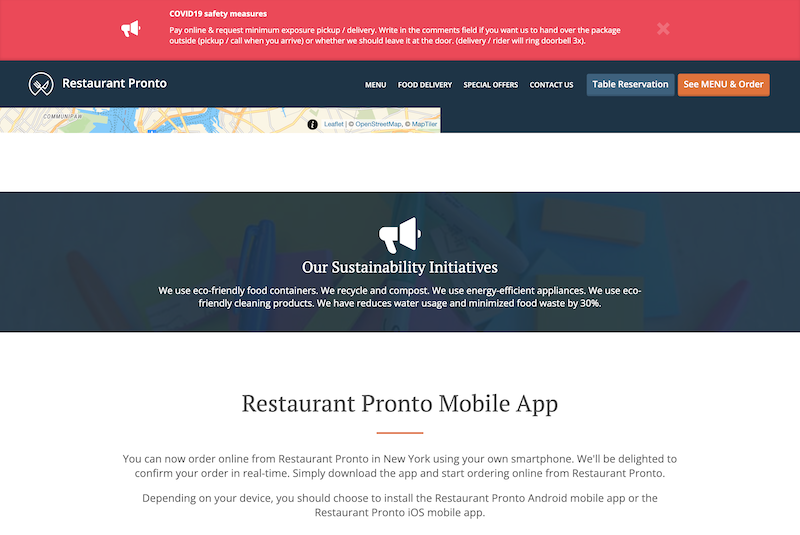- Announce it on your website: add an eco-friendly badge to your website cover photo and announce your green initiatives on your homepage. With our sales-optimized website, you can do that easily using the info feature.