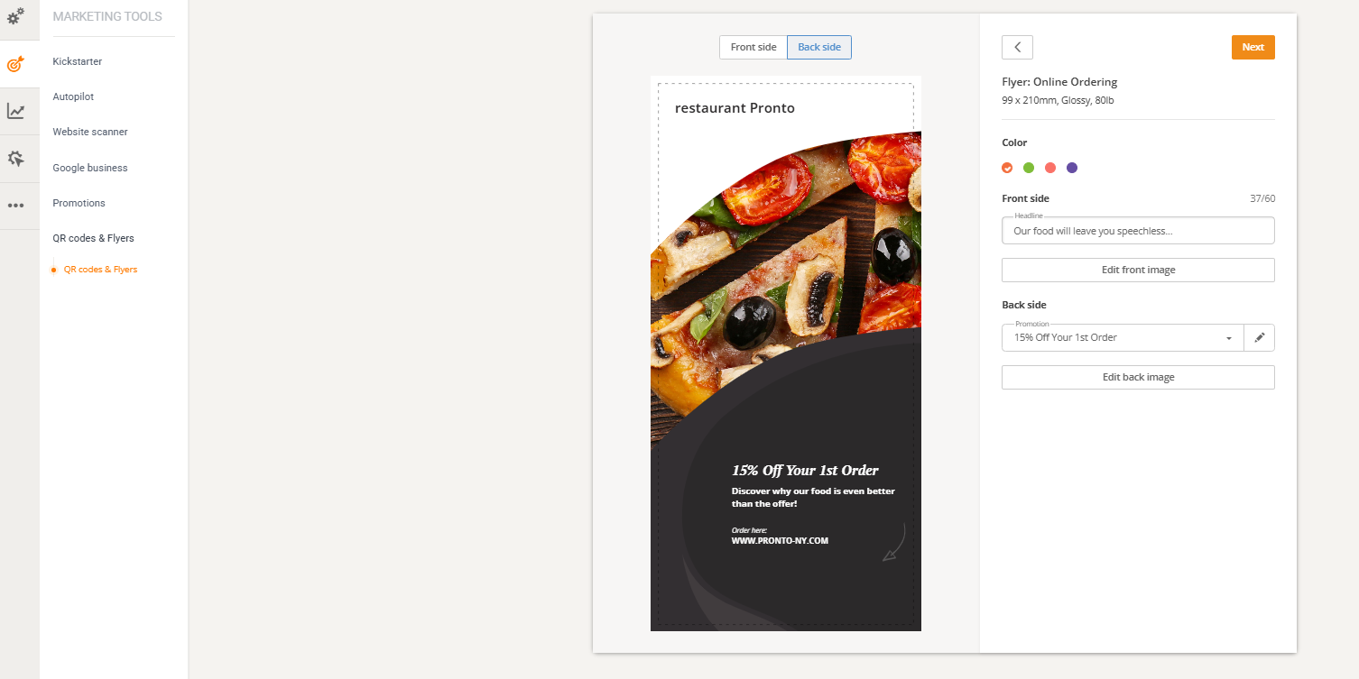 You get access to a variety of promo templates that help you create the best offer for your restaurant: