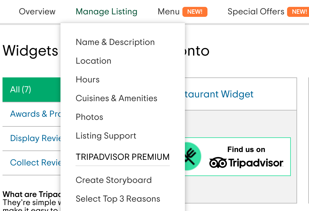 Let your customers know you’re on TripAdvisor by adding their free widget to your website. Go under Marketing Tools on your TripAdvisor restaurant profile, and click on Website Widgets. On the next page, choose Restaurant Widget.