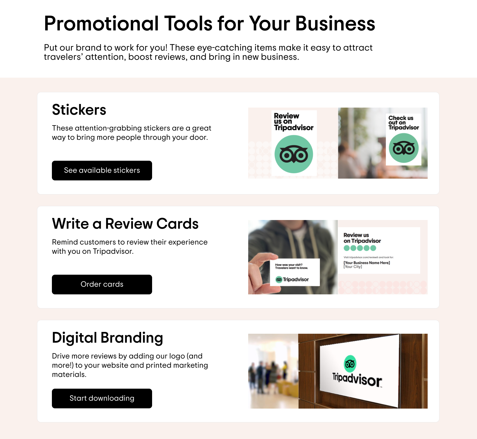 - Step 4: Order TripAdvisor business cards to encourage users to leave you reviews