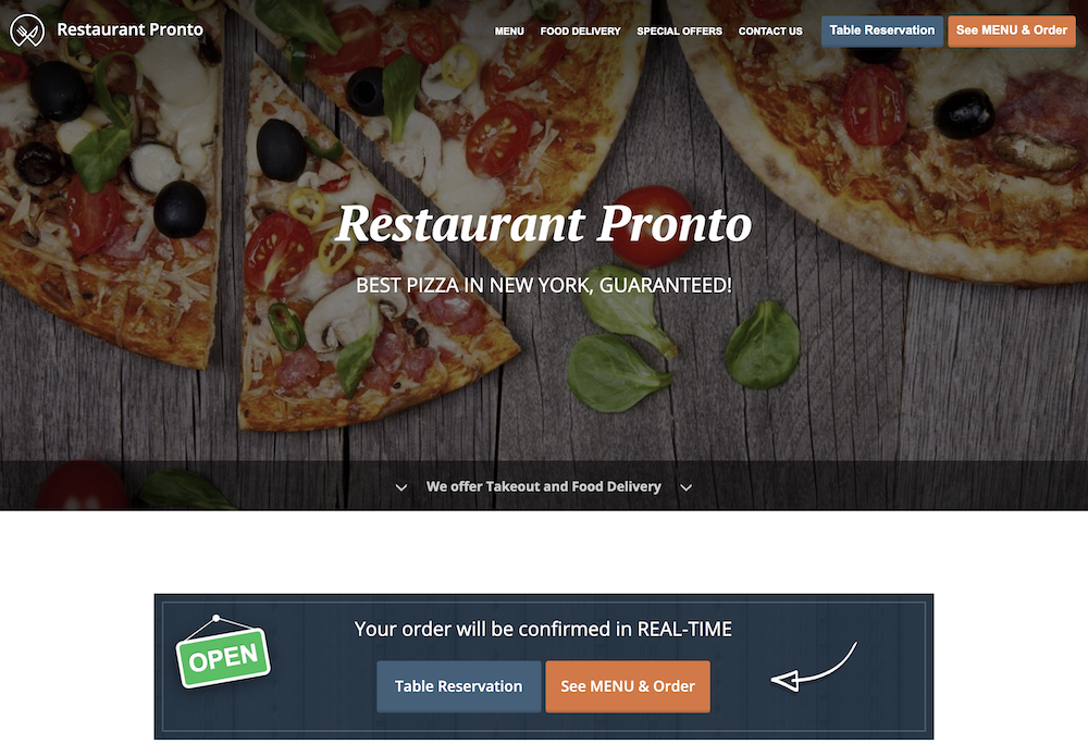 The Table Reservation button will be displayed on your website next to the Order button, so customers can choose whether they want to book a table or order in.