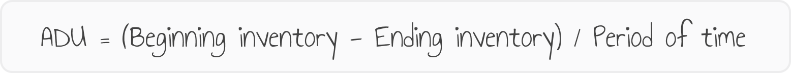 For example, let’s say you have started the month with 200 kg of pasta and have ended it with 100 kg. Then your ADU for 30 days will be: