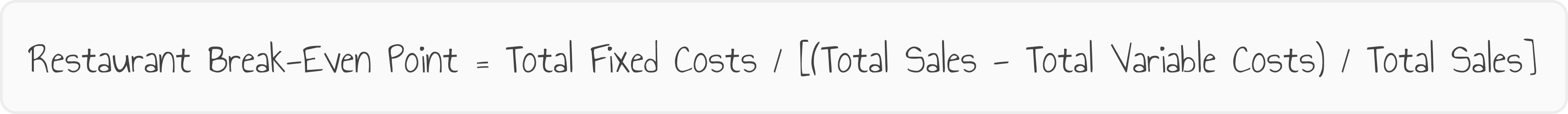 Let’s say we are calculating the break-even point for Restaurant Pronto. After careful measuring, the owners identified their costs and winnings as: