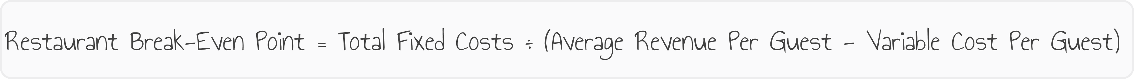 As the name suggests, a restaurant’s break-even point is when the revenue equals the total costs. It is calculated over a period of time to determine how much you have to sell to make exactly 0 profit.