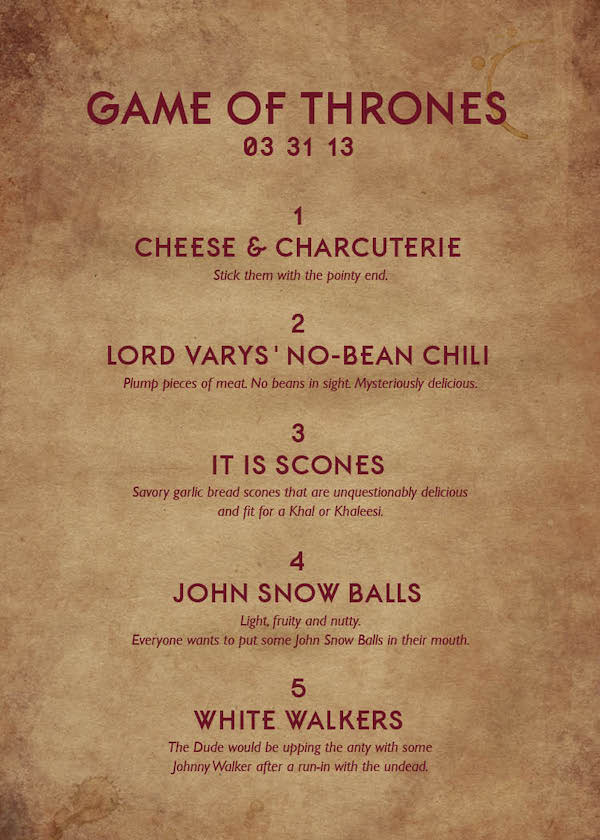 For example, check out the Game of Thrones-themed menu below.