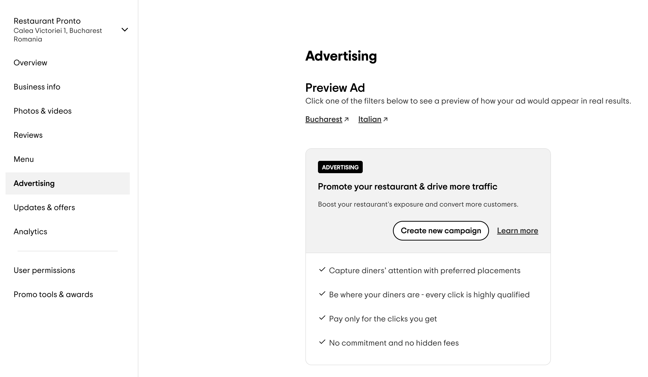 However, if your restaurant has a rating of under three bubbles, you won’t have access to TripAdvisor ads. So if you want to make the most of your profile, ensure customers have no reason to give you a low rating.