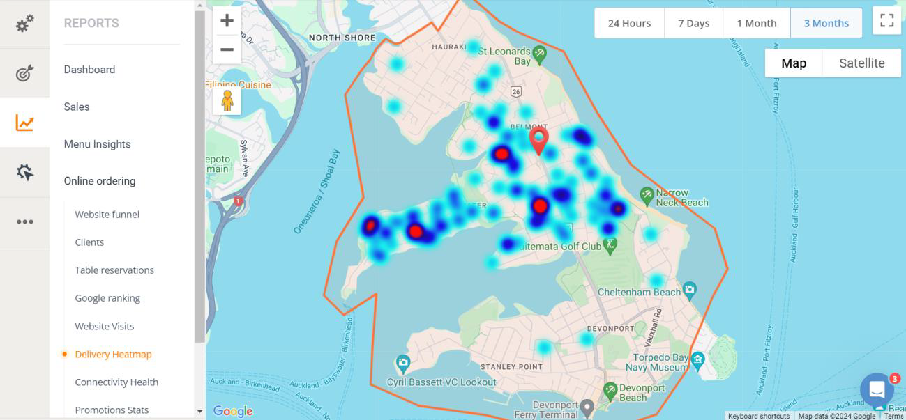 When enabling the delivery service, it is recommended to keep an eye on the Delivery Heatmap feature. It shows where most orders come from so that they can direct all their efforts to the most profitable areas and find ways to increase order density in less popular ones: