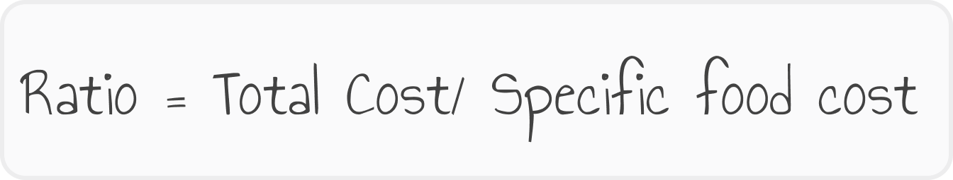 Where Total Cost = the cost for all ingredients and Specific food cost = the cost for all the ingredients necessary to prepare the menu item.