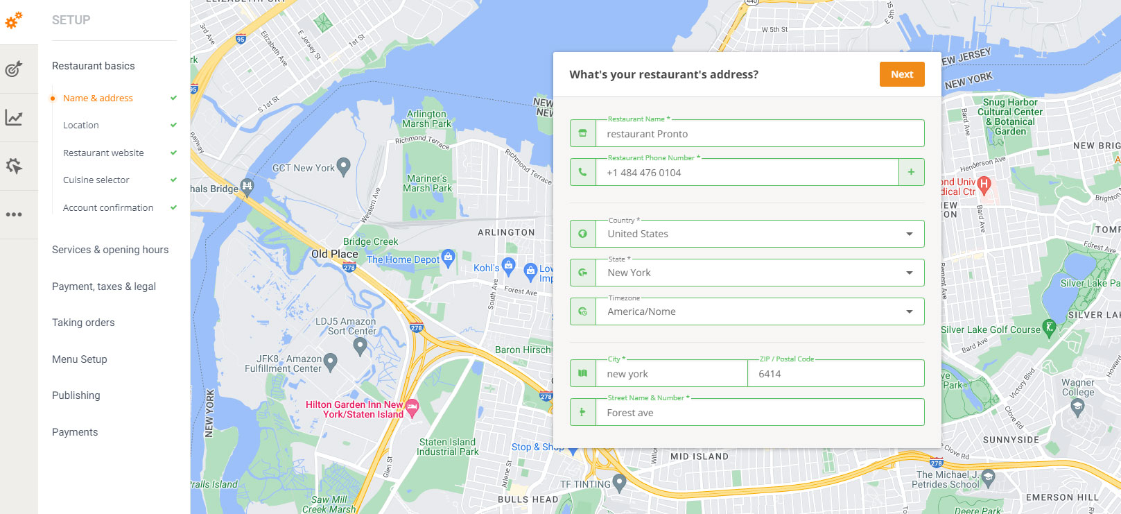 Don’t forget to also create an impressive restaurant menu so customers who scroll through it can decide what they want to pre-order faster. Go to admin -> Setup -> Menu setup & receive orders -> Menu setup and generate your menu in no time with the help of our wizard.