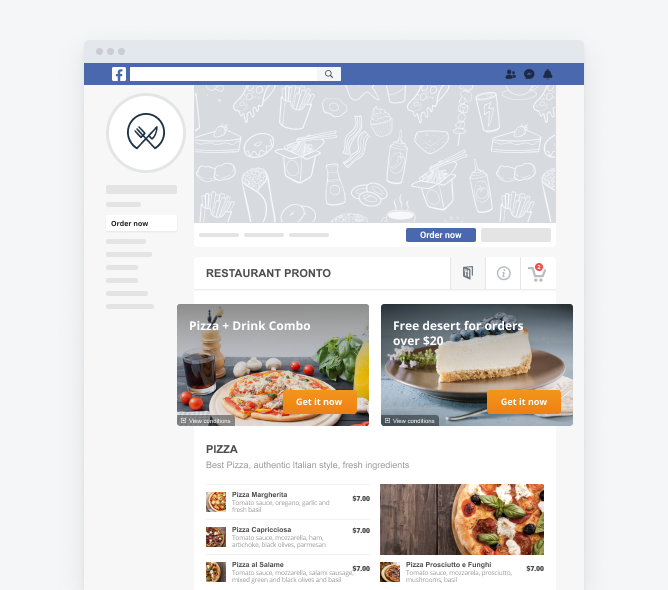 GloriaFood enables you to add the ordering widget to your Facebook page in almost no time at all. Here is how it will look: