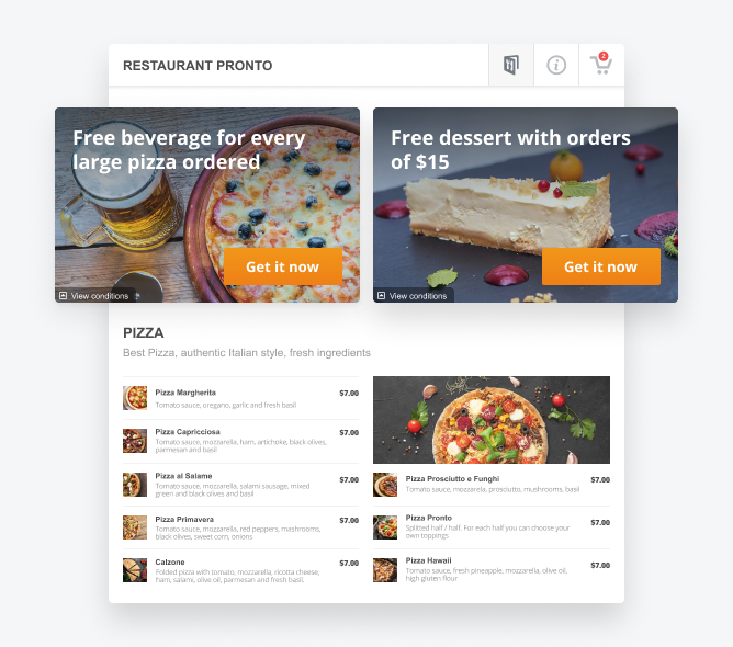 Also, make sure that your promotions are highly visible on your website. Ideally, students should spot them right from the second they open your restaurant menu & easily add them to their cart.