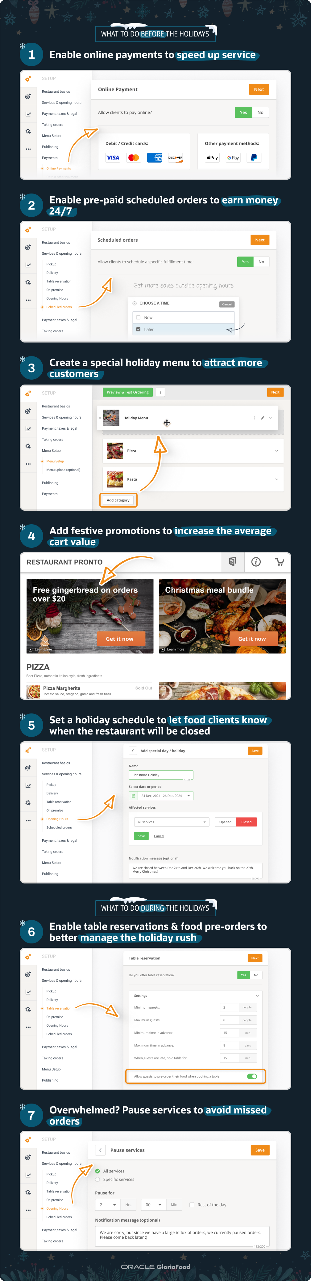 - Update your restaurant holiday schedule