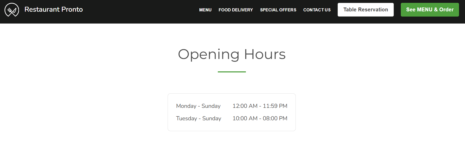 Once you save these opening hours, the changes will be immediately propagated to your website and menu.
