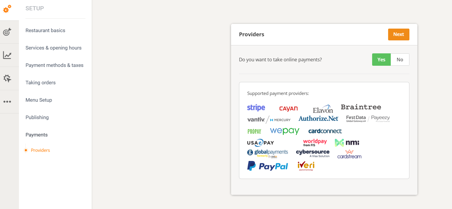 To enable this feature, go to Setup -> Payments -> Providers and click on Yes.