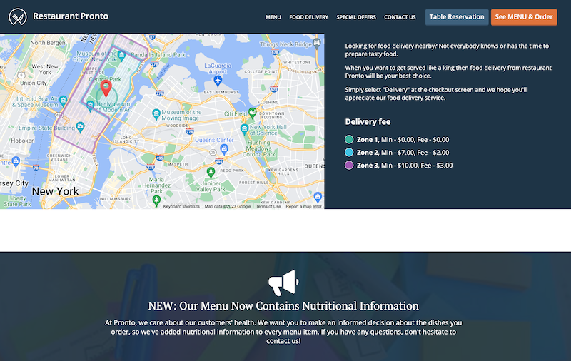Plus, the builder contains an announcement section that you can use to let customers know they can find nutritional information in your restaurant menu.