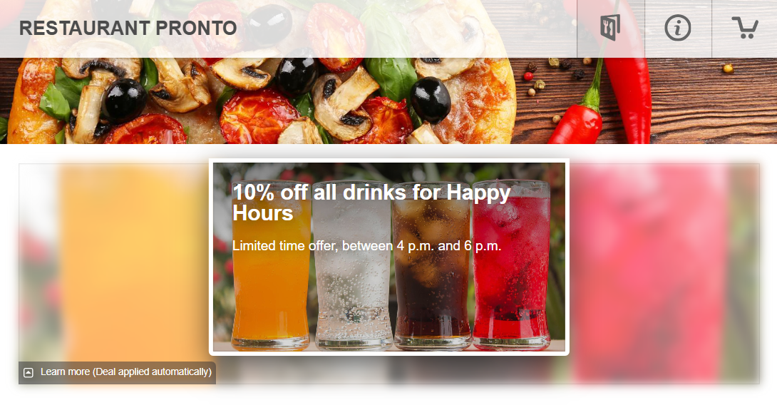 You can easily add a variety of tried and tested promotions to the top of your menu using the Promotions module from GloriaFood. You only need a few free seconds:
